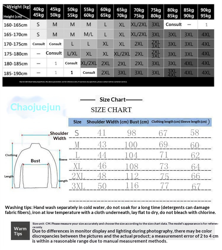 1. Asian sizes are 1 to 2 sizes smaller than European and American people. Choose the larger size if your size between two sizes. Please allow 2-3cm differences due to manual measurement. 2. Please check the size chart carefully before you buy the item, if you don't know how to choose size, please contact our customer service. 3.As you know, the different computers display colors differently, the color of the actual item may vary slightly from the following images.
